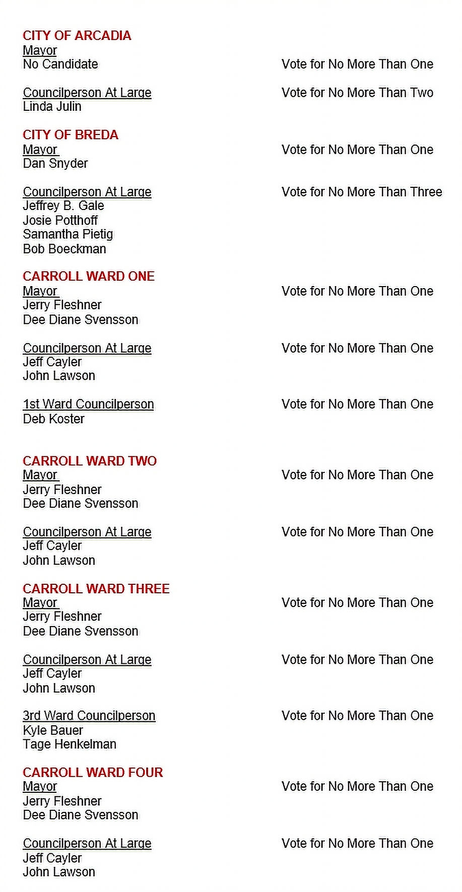 For further information, please contact the County Auditor’s office at 712-792-9802 or email kpayer@carrollcountyiowa.org.